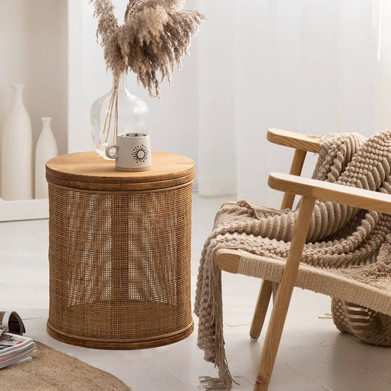 Plus qu'un simple objet de décoration, cette table basse en rotin tissé allie grâce et utilité.